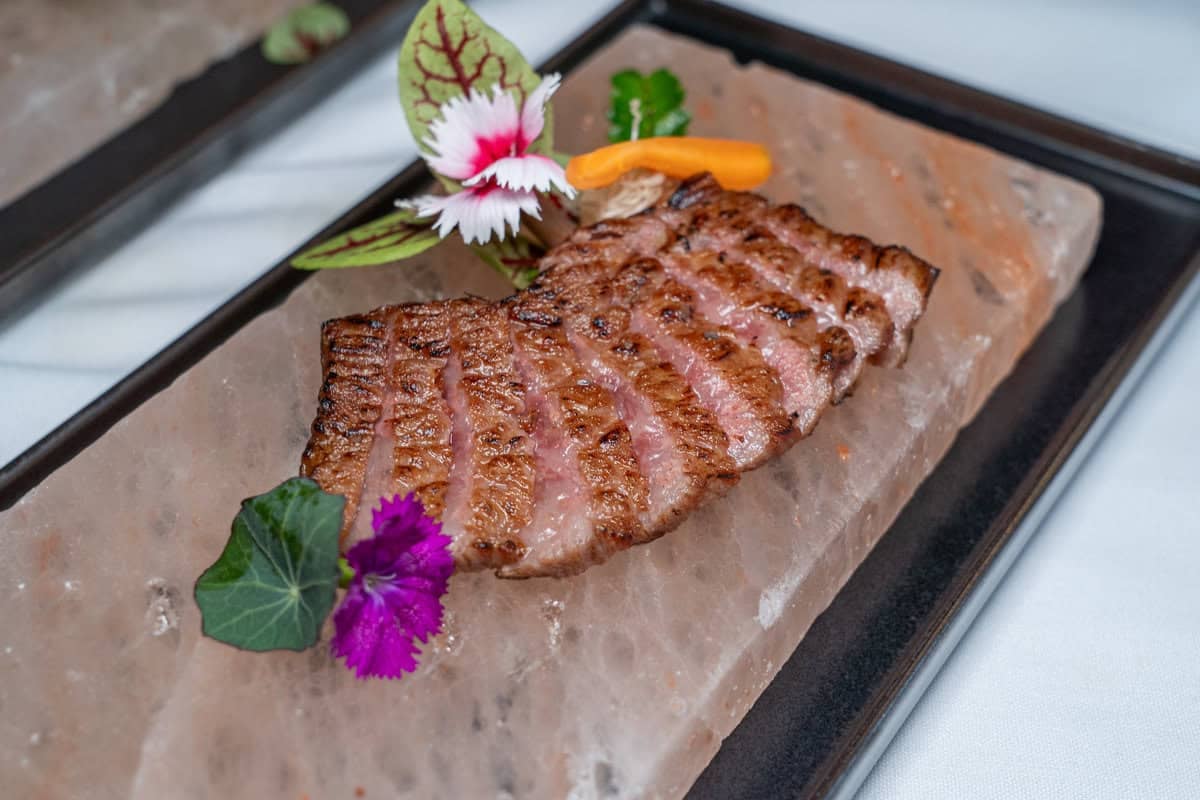 The meal began with the Lost in Lychee cocktail, followed by the first course: Smoked Tuna Roll with dry-aged Hamachi Nigiri, paired perfectly with Sake. Next, I savored the A5 Wagyu with Pierre Sparr Brut Reserve, a rich and decadent pairing. My next course was a flavorful and complex Burnt Pork Ends (I opted for the Grouper Nitsuke), served with wine.