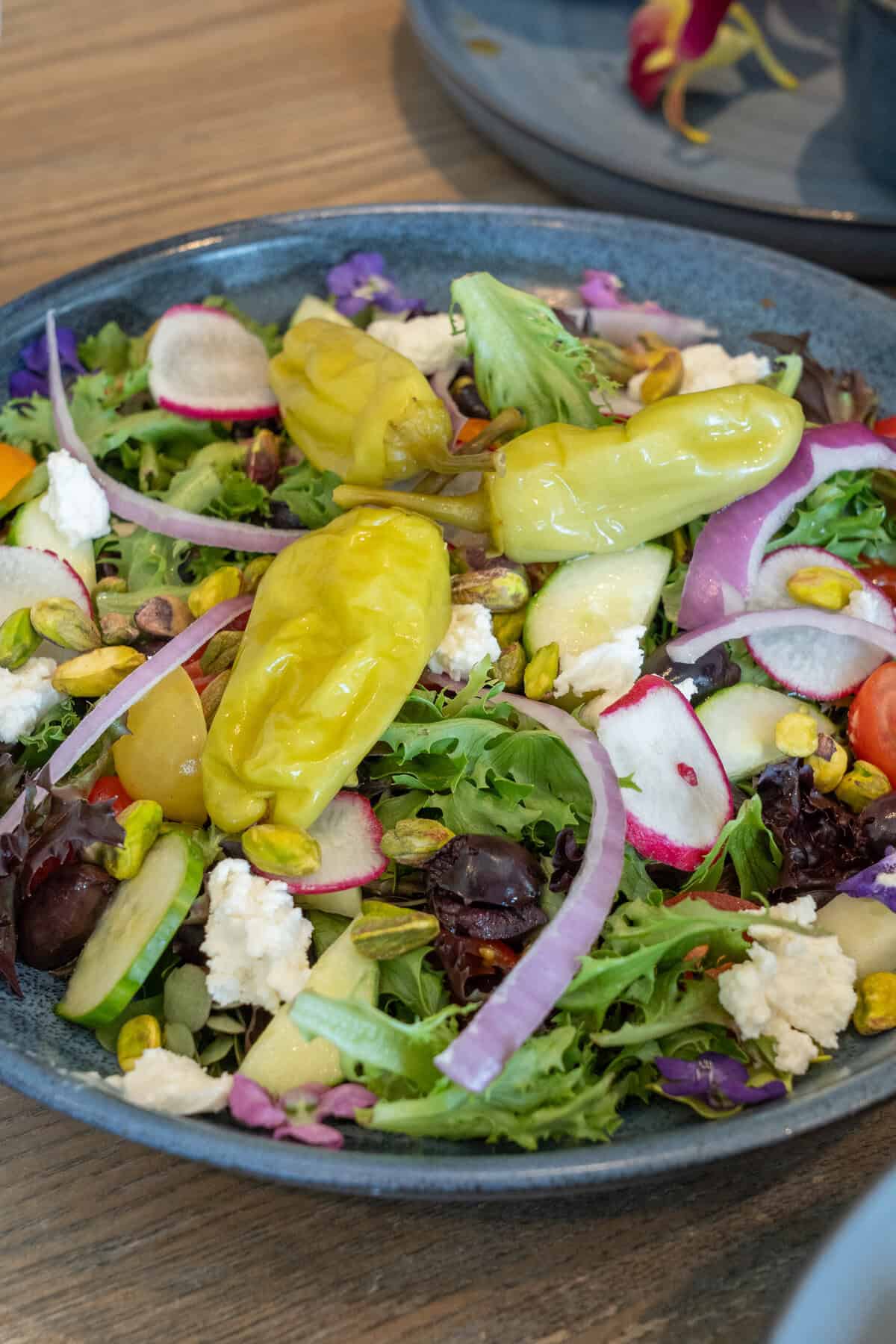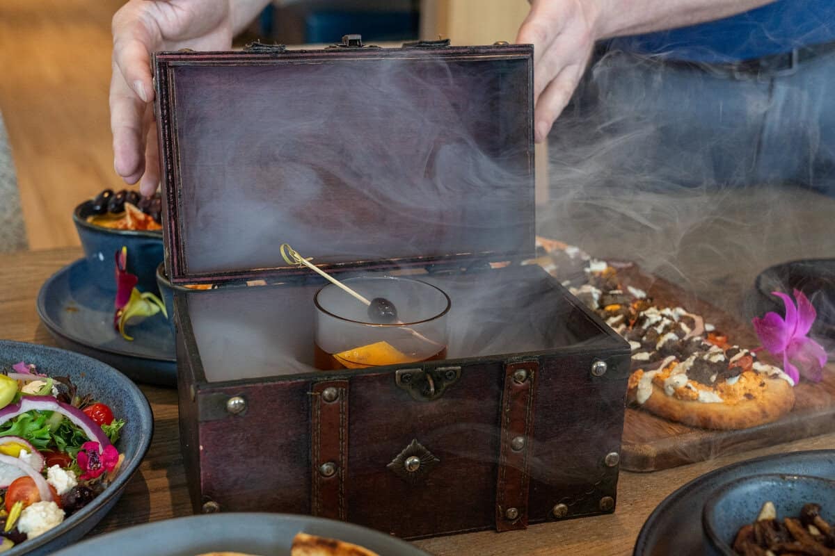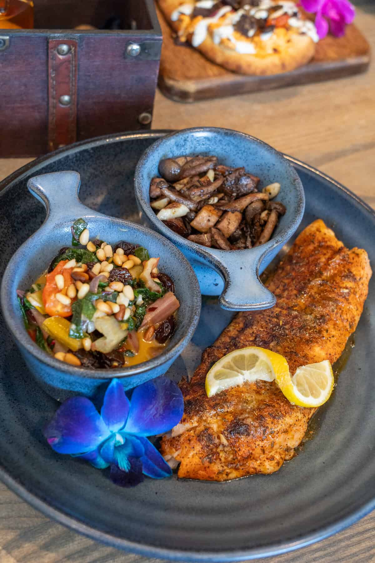 I tried the Mediterranean Dips Sampler, Aegean Salad, and a Flat Bread topped with Greek Blend. For the main course, the Coastal Catch of the Day came with wild mushrooms and seasonal veggies, perfectly cooked and plated with care. Their cocktail menu shines too — “Coconut Crush” and “Honey I’m Home” were favorites.
