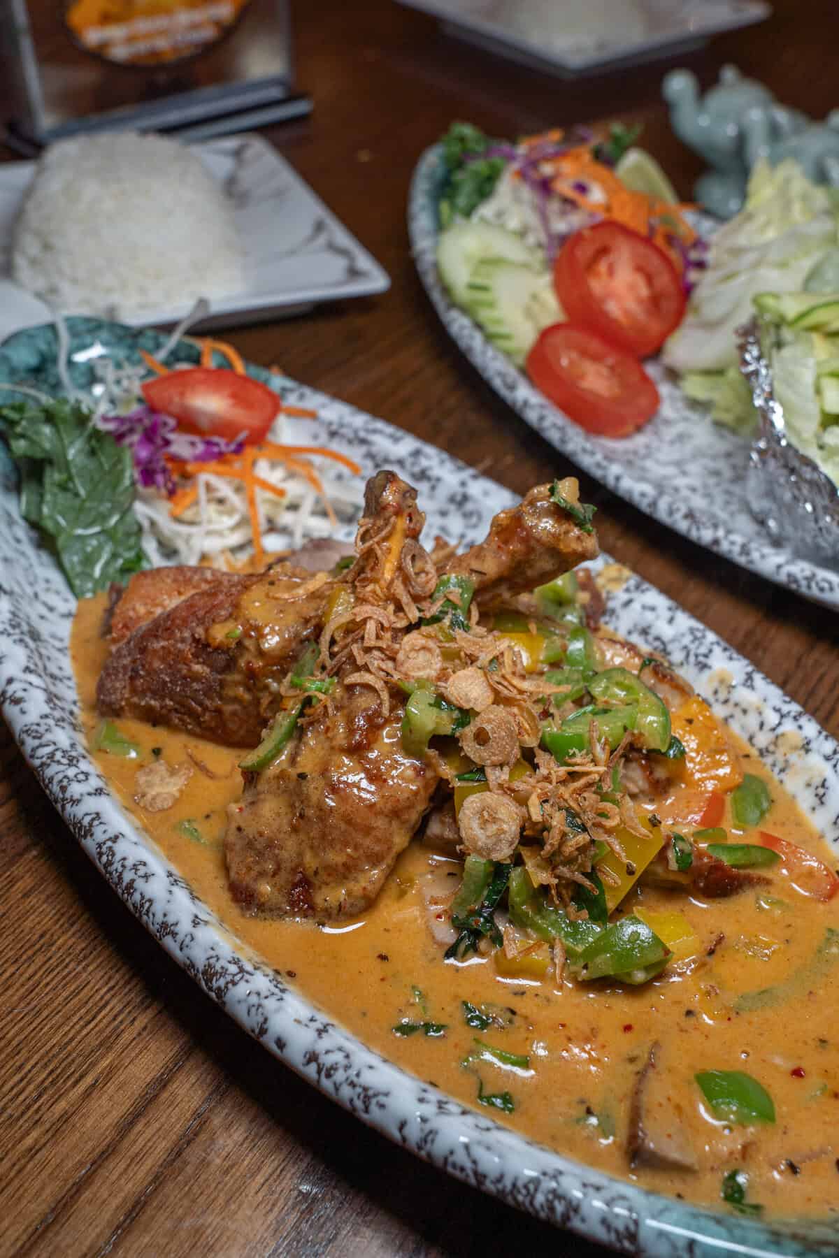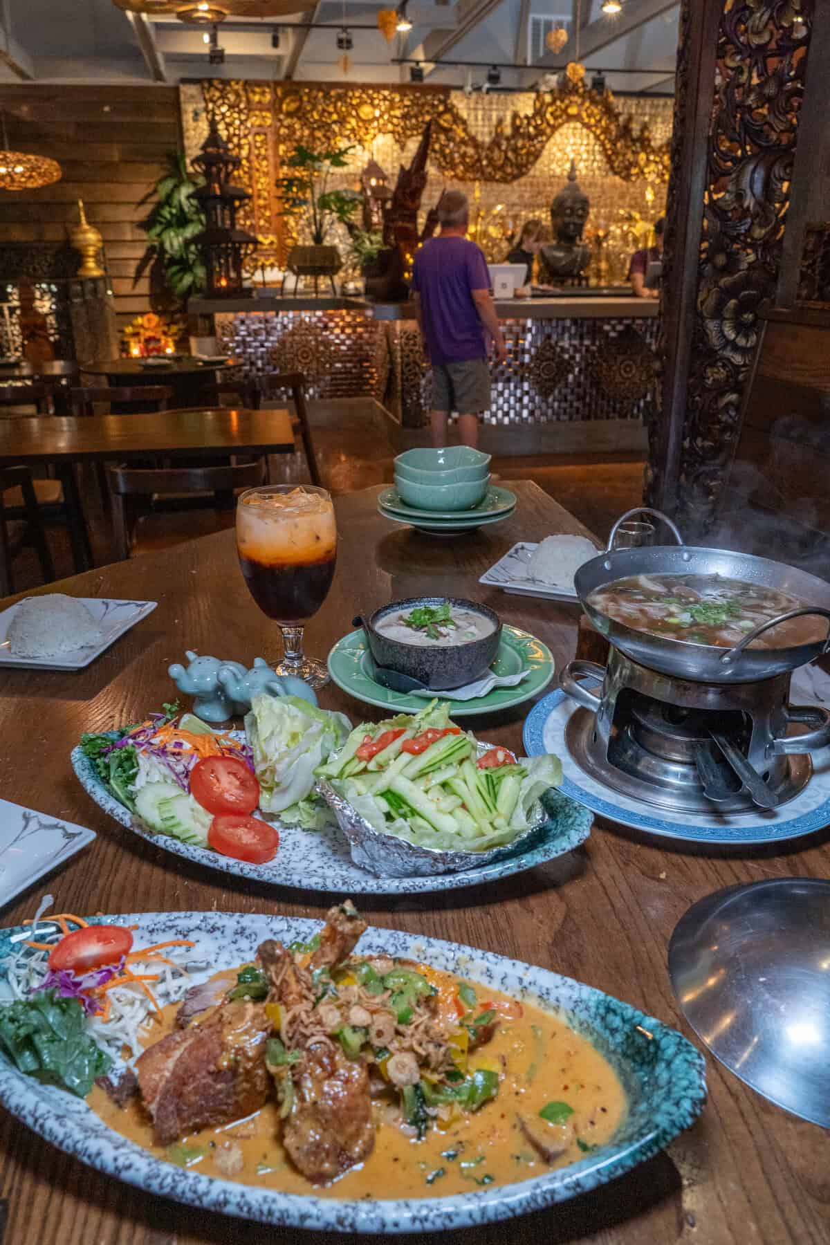 The food is as inviting as the space. I started with a Cucumber Salad and Coconut Milk Soup, both fresh and comforting, before moving on to the bubbling Beef Hot Pot. The standout for me was the Siam Duck with Red Curry Sauce — rich, tender, and perfectly balanced. And of course, I ended with Mango Sticky Rice and a tall glass of Thai Iced Tea.
