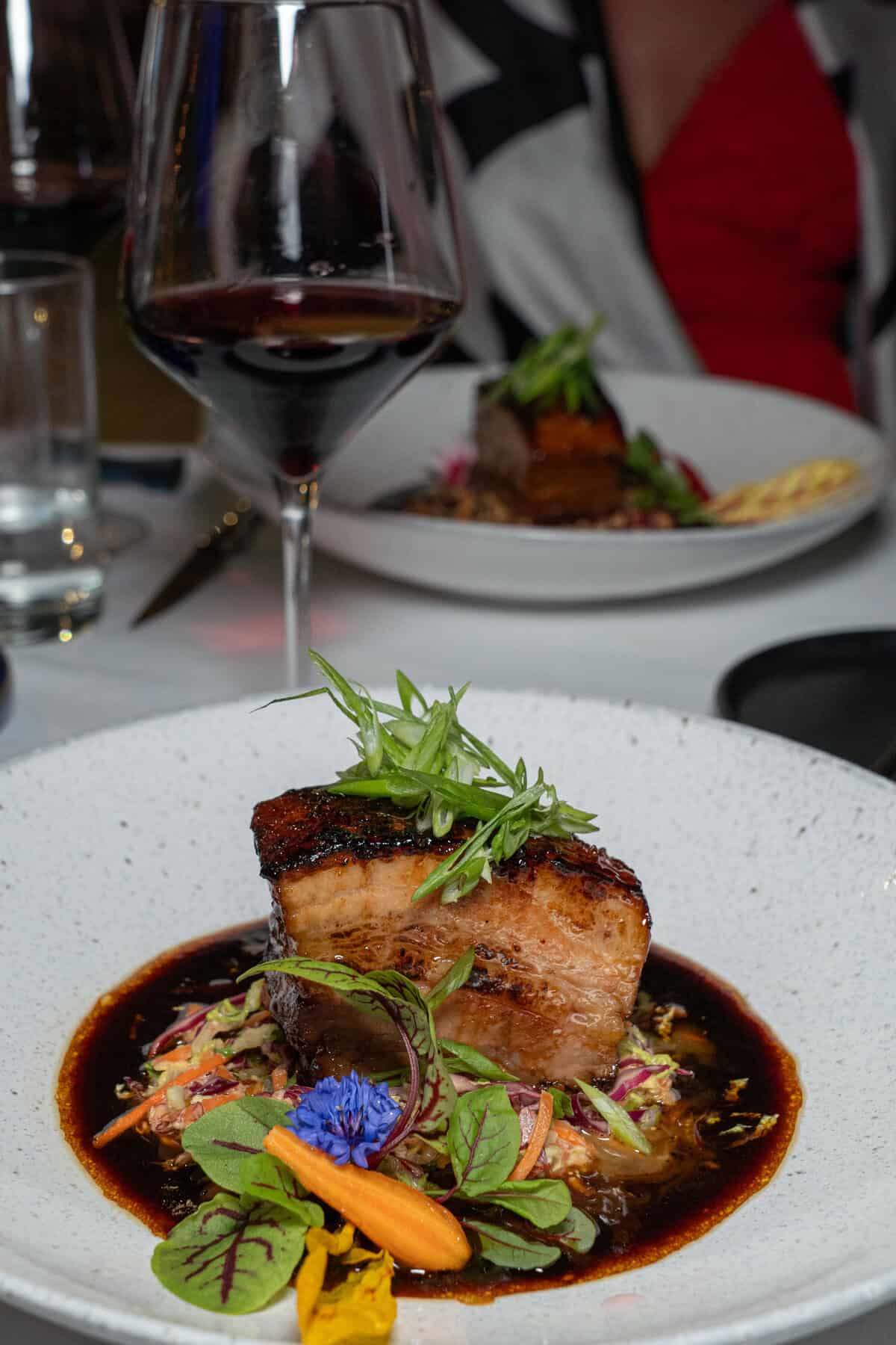 Dinner at Bonsai after dark feels special. The view alone — floor-to-ceiling windows, soft lighting, and the Gulf right outside — feels like something out of a movie.