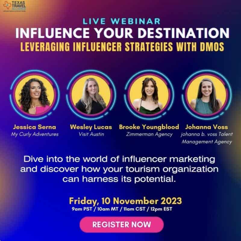 Today, Jessica reaches an audience of over 1.5 million followers and has generated millions in tourism media value, directly impacting local economies and helping destinations, hotels, and small businesses gain national visibility not just in Texas, but around the world. Her work has led to sold-out weekends for featured locations and has played a key role in the rise of Texas as a bucket-list destination.